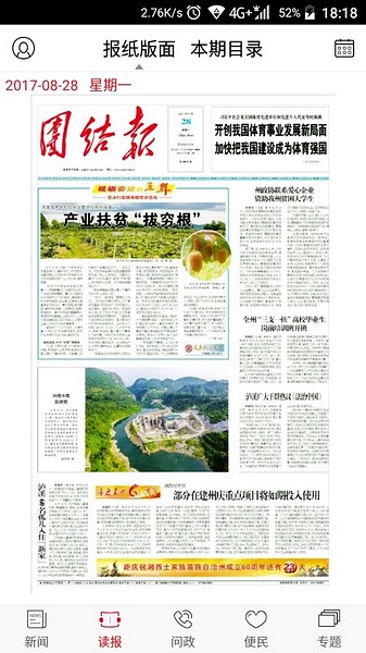 1、在软件当中我们能够去看见软件里面有很多栏目就比如说又要新闻以及读报还有我们的问政等等各种栏目让用户们去选择阅读的