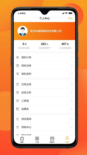 3、个人中心版面有详细的人员管理信息和订单处理内容,任务列表以及经营状况分析。