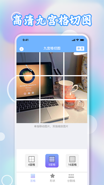 原图切图:原图基础上进行分图,不失真。自动分割,一键生成完美无损九宫格切图,拼图。
