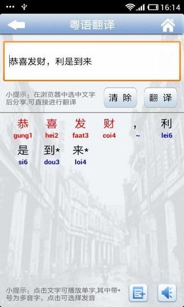 牛牛粤语app是一款帮助用户理解和学习粤语的词典软件。在这款软件中用户可以查询不同粤语词汇的含义和注解还有各种场合下的常用句式,让用户熟悉粤语使用者的口语习惯。同时,每一个词条都有收录对应的语音,发音很标准,正宗粤语。此外,牛牛粤语app还可以将用户输入的普通话翻译成粤语表述。