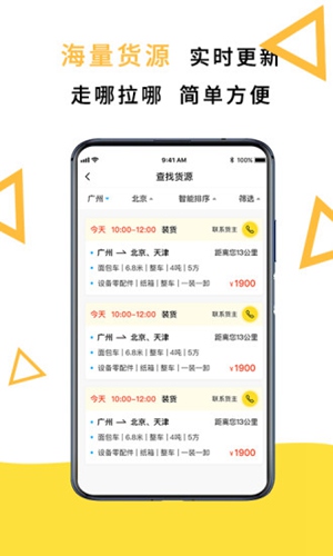3.海量货源实时更新,运输路线精准匹配,需求契合,减少空驶;