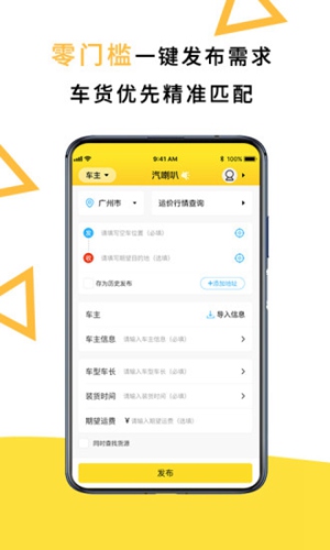 让货主快速成为物流专家,改善车货匹配平台信息不对称、运费成本不透明的问题,快速精准匹配车源和货源。