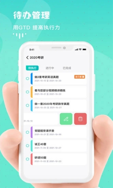 【高效的待办管理工具】待办事件清单按“待执行”“执行中”“已完成”归类,支持按颜色分类事件。特色功能——带着待办清单进在线自习室完成,记录您每条待办的执行时间和时长,帮助您更系统地总结和复盘。