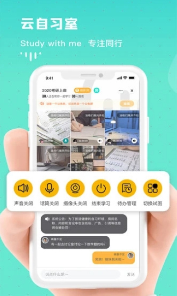 【类型丰富的线上自习室】带讨论功能的静默、连麦、视频自习室——满足您在线自习的多种需求,您甚至可以运营一间自己的线上自习室,带动学习氛围的同时还能获得可观的收益。
