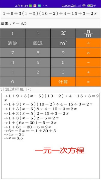 本应用支持数学常规算术题,一元一次方程,和一元二次方程的计算,其特点为: