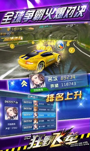 2、挑战来自世界各地的车手,登上排行榜