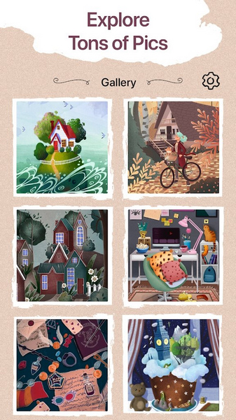 1.超多风格的精美图案画作,随意挑选或者进行闯关都可以;