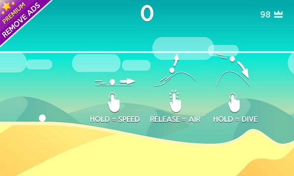小清新极简风趣味闯关游戏,游戏画面简单,玩家玩家只需要跳到线以上即可得分,但是值得注意的是,飞得太高着落会难度加强,玩家需要保持平衡,不要撞上沙丘,获取更多的分数,完成通关考验。
