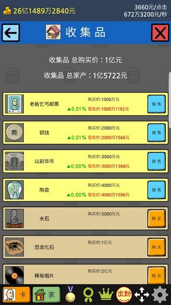 购买或出售可以升值的房屋、艺术品、股份,和朋友较量一番,看谁才是真正的“丐帮”之神!