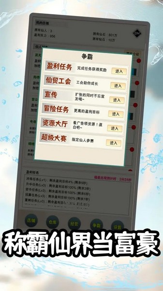这款游戏让我感觉像是一个轻松版的“模拟人生”,只不过这次是在修仙世界里当土豪。游戏的核心玩法就是通过各种任务和活动积累财富,然后解锁更多高级玩法,听起来挺简单的,但其实策略性很强。
