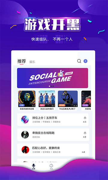 各种游戏开黑连麦唱歌聊天交友的房间应有尽有,任你选择;