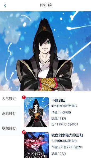2、软件为用户们打造了更加多样的排行榜单,随时都能查看国漫、日漫、美漫等不同地区的漫画每周、每月的热度排名,轻松发现更多优质漫画;