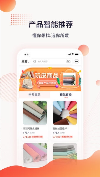 玩皮王是一款主打超纤皮产品交易服务的软件,其功能相当强大,整合了超纤皮产业链资源上下游,无论是线上线下都能提供相当丰富的服务,例如产品交易、服务交易、金融服务等,为你带来更多帮助,不仅如此,其更能支持通过用途、属性、图片、纹路等信息查找产品,为你带来更多便利!