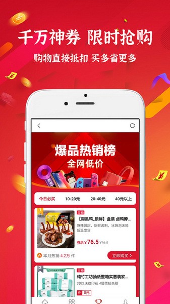 5、一键搜券:超多优惠券一键搜索,方便快捷,心爱的商品再也不用苦等降价啦!