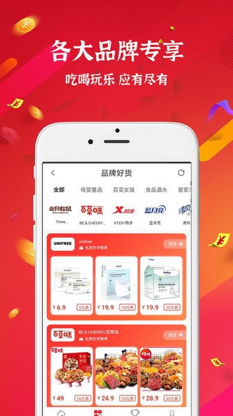 2、吃喝玩乐:每天精选千余款好货,覆盖美食美酒、茶水饮料、男女服装、家居日用、数码电器、美妆母婴、鞋服箱包等精准分类,还享包邮到家!