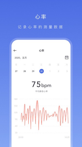 心率记录:记录下自己的心率情况,也可以让用户随时在平台上面测试。