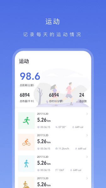 运动数据:很好的记录下每一位用户的运动记录,让用户能进行运动的数据管理。