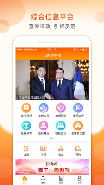 这个山东老干部app看起来挺有用的,专门给离退休的老干部们设计的。里面有很多资讯可以看,还能预约电影票和活动场地,感觉很方便啊!特别是不定期举办的志愿活动,既能丰富生活又可以认识新朋友。软件里还有党建工作模块,对关心国家大事的老同志们来说是个好东西。