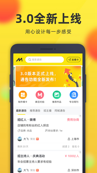 微模卡APP的亮点还在于它的功能很全面。不仅有高清模卡制作,还有很多主流模板可以选择,方便用户根据需求调整风格。另外,平台每天还会更新很多真实的活动通告和工作信息,这对于想要找工作的模特或者演员来说简直就是宝藏!
