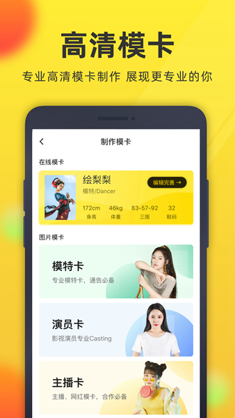 在线找模特、找艺人,在线制作模卡,在线接通告。