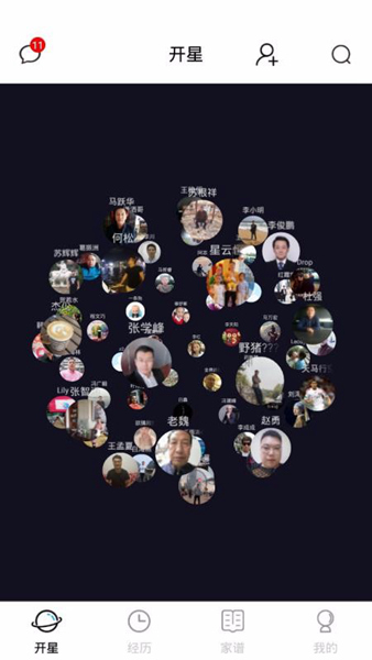 开星是一款主打家谱信息管理的软件,如果想要避免纸制族谱损坏,导致族谱信息丢失的话,那么不如使用这款软件制作电子族谱吧!在这里管理员可以快速添加每一位家族成员,并支持添加对应人员的照片、信息等内容,让家族成员能更加了解同族成员!同时软件还可支持用户上传自己最近的生活动态,多多互动,让家族更有凝聚力!