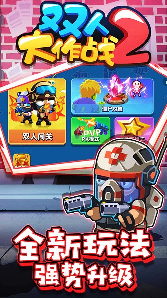 《双人大作战2》是一款非常好玩的双人联机动作射击手游,结合了枪战、塔防等多种玩法,画面也比第一部更精致了。游戏有双人闯关和悬赏模式两种选择,适合和小伙伴一起玩,在末日中生存下去。游戏里有很多武器可以使用,还能升级战车和特工,让战斗更轻松。