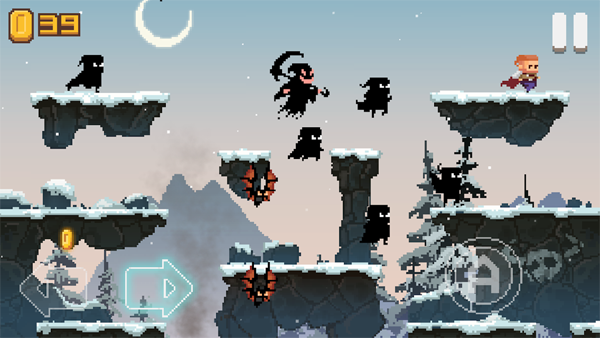 影子来了是一款非常有趣的冒险类游戏,有着贪吃蛇与马里奥趣味玩法和神庙逃亡的设定,玩家必须一边躲避追击,一边收集道具,同时还要保持自己的速度,避免被身后的影子追上。作为一款有着像素画风的跑酷游戏,影子来了尽管设计简约,但却有着各种各样的趣味性的玩法,深受玩家欢迎。玩家通过点击虚拟按键区域可以控制角色移动或者跳跃,或者二级跳,非常不错!