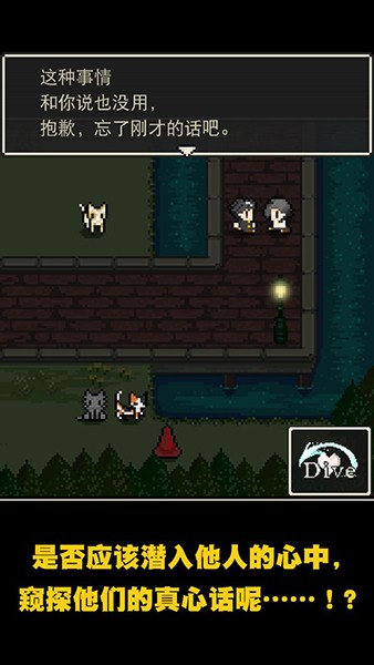 心之里侧是一款像素风格的角色扮演游戏,结合了解谜冒险元素。故事背景设置在一个充满神秘氛围的小镇,玩家扮演主角回到自己小时候居住的地方上大学,并与儿时的伙伴玛那重逢。在玛那的影响下,主角可以探索游戏中其他角色的内心世界,面对他们内心的“魔物”,揭示每个人深藏不露的情感和秘密。玩家将在游戏中体验到精彩的冒险旅程,解决谜题,挖掘角色背景故事,并影响主角及其他人物的命运走向,最终揭开整个小镇的真相。
