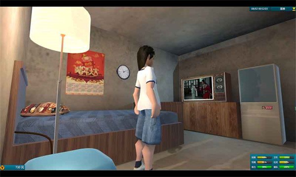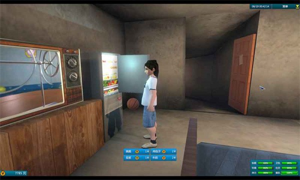 2、打开电视,会有不同的画面,打开冰箱吃东西,吃完东西饥饿值会回升。