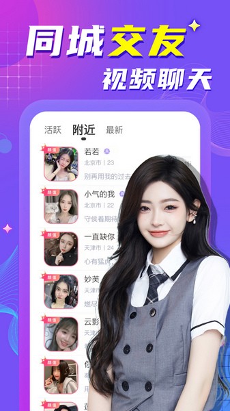 同城推荐,发现让你心动的那个ta语音畅聊,为陌生单身男女量身定做,打造附近零距离陌生人聊天交友语音聊天平台,让附近人交友语音聊天不再是难题!在这里你可以随时随地与附近高颜值陌生的约会探聊天交友语音聊天。