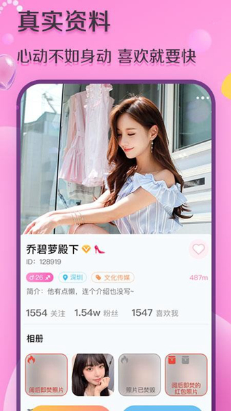 另外,Call蜜还支持实时发送消息和在线参与各种社交活动,让用户可以随时了解周边的社交动态。通过极速查阅到用户的主页和相册图片展示功能,用户可以更便捷地找到感兴趣的对象,并且进行快速交流。