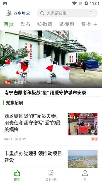 西乡塘云是一款多元化的本地资讯阅读软件,用户可以通过软件快速的了解到新闻时事、党建问政、民生动态等。西乡塘云软件汇聚了海量信息,为用户提供全天候的新闻推送服务,用户可以在这里查看新闻,获取智能化个性推荐。此外,西乡塘云软件还拥有遍布全市各地的现场云通讯员队伍,提供全面报道和大量话题圈子,为相同兴趣的用户提供互动的精神家园。同时,还提供地方生活政务服务,方便用户办事。