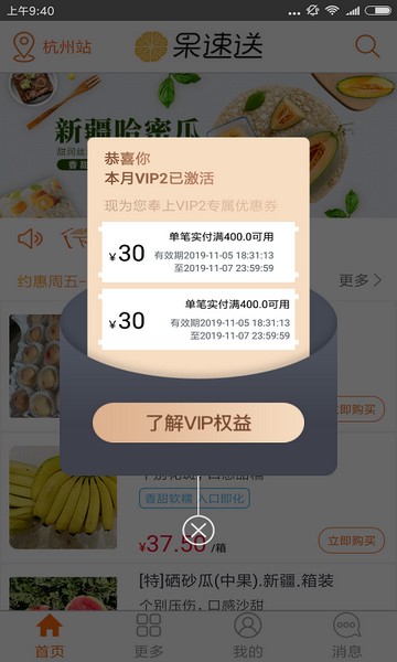 1.首页每日水果活动弹窗显示,进入详情查看商品