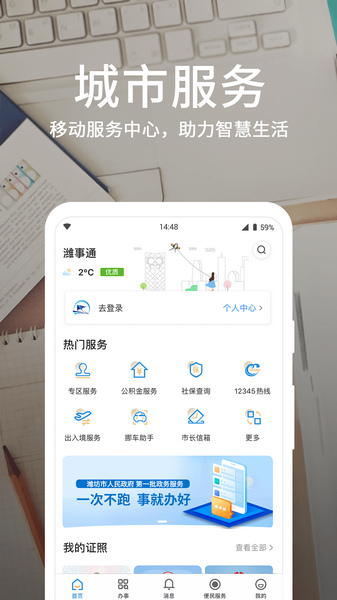 潍事通app是一款专为潍坊市民打造的便捷生活服务平台,也是融合政府与社会多元应用服务事项的综合性应用。用户可以在这里享受超多实用的便捷功能,不管是社保公积金的在线查询缴费,还是处理车辆违章情况和医院预约挂号,潍事通都能提供服务。软件集政务办事、便民服务以及当地资讯服务于一体,用户在这里可以真正享受到便捷舒适的潍坊生活。平台全面整合当地政府相关信息资源和政务服务事项,用户在这里就能够一站式完成各类办理,甚至包括电子证照申请等,非常方便。应用充分利用互联网和云计算等新一代信息技术,全面整合政府与社会相关信息资源,显著展现多样使用场景的独特价值。以“让数据多跑路,让群众少跑腿”为目标,通过爱山东潍事通,市民得以获得便民服务、政务服务和本地资讯服务,实现城市服务的一体入口。