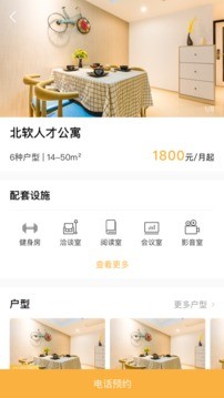 2、用户可随时查看公寓详情,详情包含户型介绍与配置
