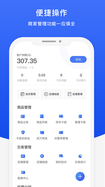快发卡app是一个专门做虚拟商品交易的平台,主要帮助商家自动发货和管理订单。这个软件挺方便的,特别是它的群集服务器能保障资金和账户的安全,这点让我觉得挺放心的。界面设计也挺简洁,操作起来不会太复杂。最吸引我的是低费率,直接对接官方渠道去掉中间商差价,这对商家来说确实省钱不少。