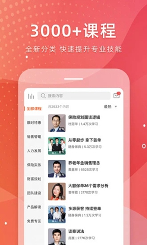 资深保险培训讲师带来各类保险培训专题,用户也可自由开课,分享展业经验。课程形式自由,只为专业的你,打造最贴心的保险知识分享平台!