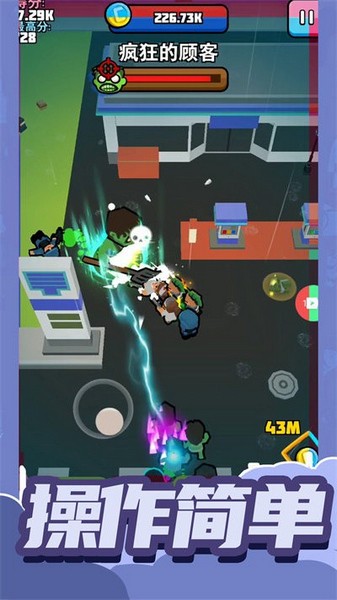 ·利用你自己的强大武器,装备最好的武器,疯狂的消灭那些僵尸
