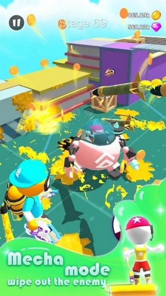 2、海量的关卡设计等待玩家来挑战,不同的关卡的上色区域面积和地形也都不同,你需要选择相对应的武器来更好的射击;