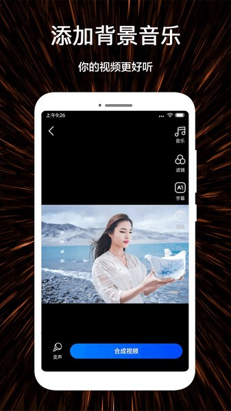 多种贴纸,字幕,任你选择,帮你打造有趣的个性视频。背景音乐支持一键获取本地音乐进行背景音乐替换。