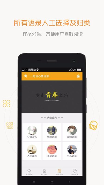 5、人工选择美文和分类,用户可以尽情的阅读,享受优质美文;