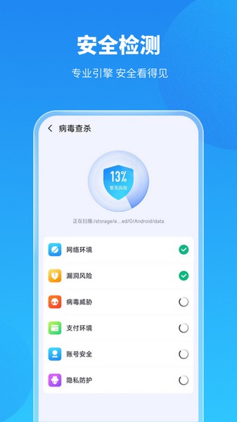 2、一键检测当前wifi安全性,及时发现潜在的网络攻击、网络钓鱼等高危风险