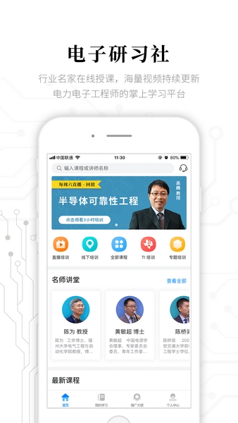 电子研习社是一款专为电子工程师们打造的技术培训软件,其汇集了海量优质培训课程可供用户随心挑选学习,并在持续不断更新中!无论你是在校学生或是刚入职的电子工程师,都能在这里进行学习,2000+热门课程视频覆盖极广,让你可以根据自己的需求学习技术,更有线下技术研讨会等你报名,与同行零距离交流,轻松掌握更多!