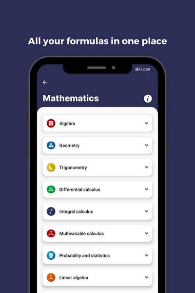 在Formulia 中,您会发现许多有益的知识以及不同领域的各种信息,例如数学、物理、化学和许多其他辅助工具。因此,如果您经常使用公式,这是帮助您快速查找所需内容的完美工具。同时,这些内容的设计非常详细,您可以在其中发现您不知道的内容。
