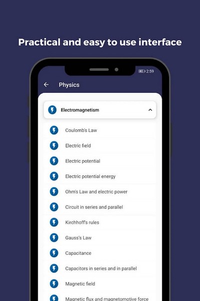 此应用程序中一个令人兴奋的功能是您可以轻松找到物理公式。除了物理类别的公式,您现在还可以找到这些类别的新概念。这有助于您更好地了解新知识,并将其快速正确地应用到实践或研究活动中。所以,这是一个你不能忽视的工具。