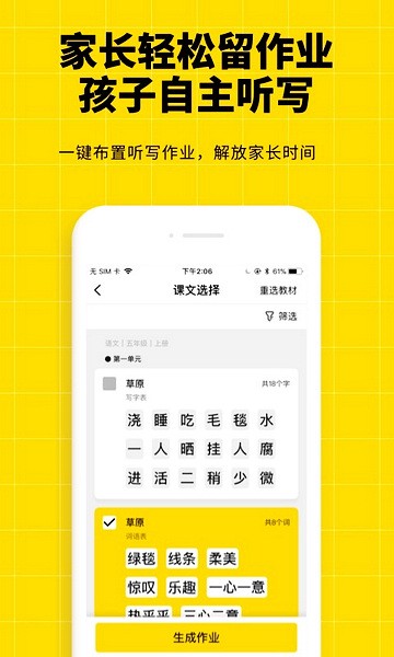 3、简单易用的字词选择功能让听写任务建立更轻松