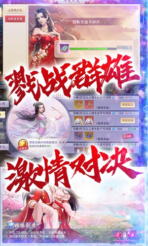 1、多的游戏福利等待玩家的体验,多样跨服竞技,渡劫、御剑,战天下,诛仙;