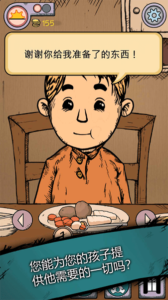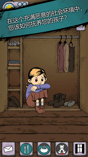 而在游戏中,养父母们需要满足孩子的:食物、健康、幸福,三个属性要求。一顿简单的饭菜就可温饱,但是孩子需要一个蛋糕怎么办?你是给孩子更多的爱?还是拮据的控制一切开销,只为生存下去?这些都是需要面对的问题。孩子在外面小打小闹一身泥巴,就需要给他好好洗干净,而保持干净整洁是远离病痛的最好办法。当然,如果你能好好抚摸下他的头,那么孩子的幸福感将会增多不少。从早上孩子一起床开始,你就需要照顾好他们的饮食,然后送他们去上学。而你则需要去工作赚钱,保证家里的钱足够日常开销。而到了晚上,如果遇到加班,你是选择更多时间去陪孩子,还是去工作赚更多的钱?这一切抉择都将会影响孩子们的成长。