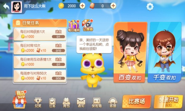5、和朋友一起竞技牌艺,给与玩家最自由的棋牌模式选择,官方还会定期的更新模式,社交系统很好。
