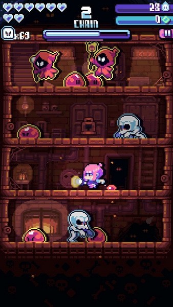 你需要合理使用各种道具和魔法,击败怪物并收集灵魂。不同的糖果和诅咒选择为游戏增色不少,而宝藏屋的奖励更让人期待。游戏的画面阴森诡异,加上凄凉的背景音乐,让人沉浸其中。